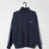 Vintage Asics quarter zip sweater sweatshirt navy blue. This 1990s sweatshirt features a high neck, a quarter zip closure and the Asics logo is on both sleeves. Made from a heavyweight cotton blend.