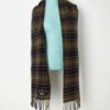Vintage Barbour tartan lambswool scarf, classic plaid green. This classic scarf by Barbour features a forest green, black and red tartan pattern, fringe detail and is made in Scotland from a soft lambswool.