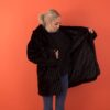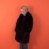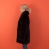 Vintage black faux fur long coat. This beautiful coat by Bernardo features two open side pockets, a large collar and a hook and eye closure. Made from a super soft, heavyweight synthetic blend.