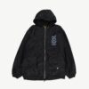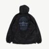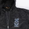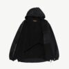 Vintage black mens K-Way lined snowboarding jacket. This epic jacket features a large drawstring hood, two open side pockets, a geometric design on the front and back, an inside pocket and a full length zip closure. Made from a heavyweight synthetic blend.