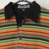Vintage black polo shirt with multicoloured stripes. This 80/90s black polo features multi-coloured stripes on the front, a button closure, short sleeves and is made from a lightweight cotton blend material.