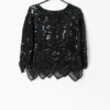 Vintage black sequin top with floral pattern and profiled hem – Medium / Large
