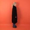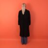 Vintage long black shearling coat. This beautiful coat is fur lined and features a button closure and two open side pockets. Made from a heavyweight suede and fur blend.