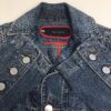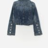 Vintage blue denim jacket by Dsquared with flared sleeves. This Y2K denim jacket by Dsquared in blue features two buttoned chest pockets, two pockets above the hem with button closures and a button opening. Made in Italy from a mid-weight cotton.