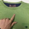 Vintage Champion sweatshirt in lime green. This classic Champion sweatshirt is in a bright lime green and features hints of navy blue on the hems and cuffs and a green Champion logo on the left chest. Made from a soft, lightweight cotton.