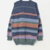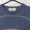 Vintage Chapter House striped wool sweater with white bird. This 90s blue sweater by Chapter House features an orange and green striped pattern with a single white bird on the front. This jumper also features a crew neck and a stretchy hem and cuffs for a personalised fit. Made in Scotland from a soft, mid-weight, slightly coarse, wool.