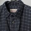 Vintage cord shirt in navy blue with a white plaid design. Features two chest pocket with button closure, and is made from a lightweight, soft cotton. A perfect shirt for all year round and would look great layered.