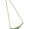 A rare opportunity to acquire up to three matching examples of a geometric-inspired deadstock vintage Corocraft necklace. Priced individually, each lovely necklace features a gold metal chain and an enamel detail. There are three variations available: Blue, Green and Black. These gorgeous necklaces date to the late 1970s or early 1980s. Each one fastens with a spring hook and eye closure.