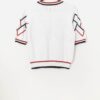 Vintage cotton short sleeve jumper with floral pattern. This beautiful 90s jumper features a argyle and floral design on the front and short sleeves, shoulder pads, a round neck and red white and blue piping. Made from a mid-weight soft cotton.