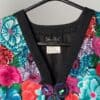 Vintage cropped bolero Jacket with bold floral print and stunning beaded sequin shoulders by Diane Fres. Made in 1980s from 100% French cotton this statement jacket will bring joy wherever you sparkle. The jacket features a large beaded floral brooch style detail that conceals the pop fasteners behind, and small shoulder pads.