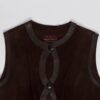 Womens vintage dark brown suede waistcoat, made in England. This gorgeous 1960/70s vest features a crew neck, a button closure, a leather trim and is made from a heavyweight soft suede leather blend.