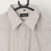Vintage deadstock 1970s shirt with brown zigzag pattern. This white shirt with a pastel brown abstract pattern throughout, features a pointed collar, a white button closure and buttoned cuffs. Made from a lightweight cotton blend.