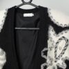 Vintage embellished cardigan in black. This beautifully unique cardigan has a stunning abstract design on the chest, shoulders and back that feature faux pearls, black sequins, and silver embellishments.