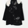Vintage embellished cardigan in black. This beautifully unique cardigan has a stunning abstract design on the chest, shoulders and back that feature faux pearls, black sequins, and silver embellishments. This 80s cardigan also features shoulder pads, a soft lining, and is edge to edge with no fastenings. Well made with a soft, heavyweight viscose, polyacrylic, cotton, angora wool and lurex blend with a polyamide lining. A perfect winter party piece! Our recommended size: Large Label says: Large Condition: Very good Material: 46% viscose, 25% polyacrylic, 23% cotton, 4% angora wool, 2% lurex Lining material: 100% polyamide Measurements in inches: Pit to pit: 22.5 Shoulders: 24 Front length: 29 Back length: 30.5 Sleeve: 20.5 Hem: 24 We recommend that you compare our measurements to a similar item of your own to ensure good fit. Measurements are taken flat and doubled for waist and hip. Our items are vintage and may show signs of previous wear, etc. Any significant wear, damage or obvious marks will be photographed. Please inspect photos carefully. Our recommended sizes are based on UK sizes.