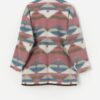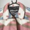 Vintage fleece blanket coat in pink with geometric design. This stunning coat from the 1990s is in a soft blush pink, blue and grey with an Aztec/ geometric design. The jacket features an oversized fit, wooden effect buttons and two front hand pockets. A lovely coat that will keep you warm and stylish! Made from a soft, lightweight material. By Northen Sun, made in Canada.