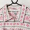 Vintage floral fleece in pink and grey. This white fleece features a beautiful pink and grey floral pattern, a full length zip closure, long sleeves and has two open side pockets. Made from a mid-weight, soft synthetic material.