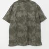 Vintage forest green Hawaiian shirt with grey palm tree print. This amazing Hawaiian shirt in forest green features a grey palm tree print, an open collar, a coconut button closure, one chest pocket with a coconut button closure and short sleeves. Made from a mid-weight silk.