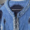 Vintage full length cardigan coat in light blue. This stunning mohair cardigan coat from the 80s is in a lovely soft blue and features knitted diamond shapes in dark blue, light blue and hints of silver with 3D bobbles. Made from a soft, heavyweight material.