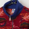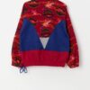 Vintage funky quarter zip fleece in red and blue. This bright 90s fleece features an electric blue and red colour block pattern and a funky, geometric pattern on the chest and sleeves. This fleece also features a quarter zip closure, a drawstring hem and two open side pockets. Made from a mid-weight soft synthetic material.