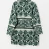 Vintage green deer patterned pullover fleece. This super soft forest green 90s fleece features a beautiful deer and geometric pattern, two open side pockets, long sleeves and a draw string hem and neck. Made from a heavyweight, soft cotton blend.