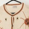 Vintage handknitted 3D sheep cardigan, made in Peru. This cream cardigan features an amazing sunny farm scene on front, a rainy farm scene on the back and both feature cute, fluffy 3D knit sheep. This cardigan also features a brown trim, a crew neck and a full length button closure. Hand made in Peru from a heavyweight soft cotton.