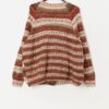 Vintage handknitted brown and rust orange cardigan. This stunning 70s striped cardigan in various shades of brown and rust orange features a button closure, a round neck and long sleeves. Made from a mid-weight synthetic material.