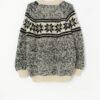 Vintage handknitted chunky wool sweater with snowflake design. This sweater is in a lovely off white and black and features a stunning snowflake knitted design with small hearts. A lovely sweater for the cold weather that will keep you nice and snug! Made from a soft, heavyweight wool.
