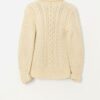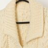 Vintage handknitted cream cable knit cardigan with real wood buttons. This beautiful cream 1960s cardigan features a full length real wooden button closure, long sleeves and a collared neck. Made from a heavyweight wool blend.