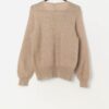 Vintage handknitted floral beige sweater. This 90s handknitted beige pullover jumper with a relaxed fit features a beautiful bright yellow and brown floral pattern on the front, a round neck, stretchy cuffs and hem for a comfortable fit and a button closure on the back of the neck. Made from a mid-weight, slightly coarse, mohair blend.