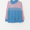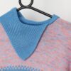 Vintage handknitted pastel pick and blue fine knit jumper. This 70s pastel blue and pink fine knit jumper features a geometric pattern on the front and back and a fold down collar. Made from a mid-weight acrylic blend.
