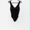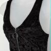 Vintage handmade velvet bodysuit with ring pull zip. This 80s style black bodysuit features a V-neck with a silver ring pull zip closure and a hook and eye closure on the bottom (crotch) of the bodysuit. Handmade from a lightweight synthetic material.