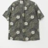 Vintage Hawaiian shirt in forest green. This forest green Hawaiian shirt features a floral and leaf pattern, a button closure, one chest pocket with a button closure and short sleeves. Made from a heavyweight cotton.