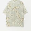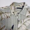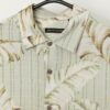 Vintage Hawaiian shirt in pastel green with leaf print. This pastel green Hawaiian shirt by Pierre Cardin features a leaf print, one chest pocket with a button closure, a full length button closure and short sleeves. Made from a mid-weight synthetic material.