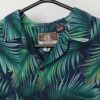 Vintage Hawaiian shirt with bold palm leaf pattern, made in Hawaii. This navy Hawaiian shirt by Kalaheo features a bright palm leaf pattern. This shirt also features a faux coconut button closure, one open chest pocket, short sleeves and is made in Hawaii from a mid-weight synthetic material.