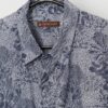 Vintage Hawaiian shirt with fan pattern. This beautiful dark blue and white Hawaiian shirt features a unique fan pattern, a button closure and short sleeves. Made in Hawaii from a lightweight cotton lawn.