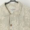 Vintage Hawaiian silk shirt in pale green with coconut buttons. This pale green Hawaiian shirt features an off white floral design. This shirt also features a pointed collar, an open chest pocket, a real coconut button closure and short sleeves. Made from a mid-weight silk.