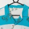 Vintage Hawaiian striped shirt with Aloha dancers. This amazing 1980s shirt with bright blue and white stripes features a palm tree and Aloha dancer print. This shirt also features one open chest pocket, an open collar, a full length button closure, short sleeves and is made from a mid-weight cotton.