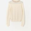 Vintage Heather Valley wool sweater with crochet trim. This beautiful cream Y2K sweater by Heather Valley features a pastel brown crochet crew neck and long sleeves. Made from a lightweight pure new wool.
