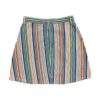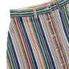 Vintage miniskirt with multicoloured striped pattern in green, red, blue, white and beige. Fastens with buttons at the front.