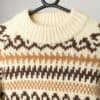 Vintage Icelandic style jumper. This Icelandic-inspired jumper that features a chunky crew neck and a brown and mustard yellow pattern on the chest, hem, shoulders and cuffs. Made from a slightly coarse, mid-weight acrylic and nylon blend. Circa 1990. Our recommended size: Small to medium Label says: Medium, 48/50 Condition: Very good Material: 80% acrylic, 20% nylon Measurements in inches: Pit to pit: 19.5 Front length: 26 Back length: 26 Sleeve length: 31 – Measurement taken from collar to cuff Hem unstretched: 16.5 Hem stretched: 19.5 We recommend that you compare our measurements to a similar item of your own to ensure good fit. Measurements are taken flat and doubled for waist and hip. Our items are vintage and may show signs of previous wear, etc. Any significant wear, damage or obvious marks will be photographed. Please inspect photos carefully. Our recommended sizes are based on UK sizes.