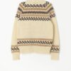 Vintage Icelandic style jumper. This Icelandic-inspired jumper that features a chunky crew neck and a brown and mustard yellow pattern on the chest, hem, shoulders and cuffs. Made from a slightly coarse, mid-weight acrylic and nylon blend. Circa 1990.