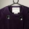 Vintage Jaeger purple velvet jacket. This bold, deep purple jacket features a large black button neck closure, two open pockets and light shoulder pads. Made in 1997 from a mid-weight cotton and rayon blend with a rayon lining.