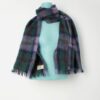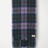 Vintage James Pringle Weavers purple plaid scarf with pockets. This beautifully long and wide 1960s scarf features a lilac, deep purple and forest green plaid pattern, fringe detail and has two large pockets. Made in Scotland from a soft mohair and wool blend.