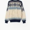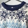 Vintage Janus of Norway Norwegian wool jumper. This beautiful cream jumper features a deep blue and navy Norwegian style pattern. This jumper also features a cosy, thick crew neck for extra warmth! Made in the Norway from a mid-weight slightly coarse lambswool.