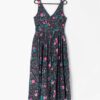 Vintage Laura Ashley summer maxi dress with black, dark grey and pink floral pattern (circa. 90s). Buttoned front bodice, pleated waist, shoulder straps with v-shaped sweetheart neckline. Made in Great Britain. This is a great quality, stunning dress.