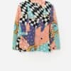 Vintage Laurel by Escada bright abstract colourful blazer. This beautifully bright 1990s blazer features gold buttons on the waist and cuffs, a waist hook closure and a long V-neck. Made by Laurel by Escada with a lightweight soft cotton.
