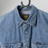 Vintage Lee Riders shirt with white snap buttons. This 90s Lee Riders shirt in light blue features a white snap button closure with a classic button closure on the collar. This shirt also features yellow piping throughout, two chest pockets with snap button closures and snap button cuffs. The Lee logo is also embroidered on the left chest pocket. Made from a heavyweight soft cotton.