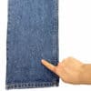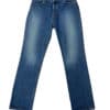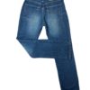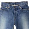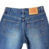 Vintage Levis 575 jeans in a medium to dark blue wash with a lighter shade across the thighs to create that naturally worn look. The shape is straight but overall more of a relaxed fit. They consist of a mid-rise waist, five pockets, back patch, button up fly and Levi’s red tab.