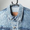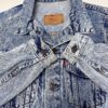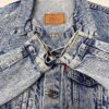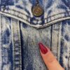 Vintage Levis acid wash denim trucker jacket, made in the UK. This amazing Levis jacket from the 1980s is in a lovely mid blue with a stunning acid wash design. The jacket features two chest pockets, two hand pockets, a lovely collared neckline and matching dark bronze buttons on the chest pocket and cuffs. The classic red Levis tab is also on the left chest pocket. Made from a soft, mid-weight cotton. A lovely twist on the classic trucker jacket that will be sure to standout!