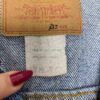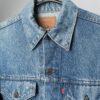 Vintage Levis denim trucker jacket in mid-blue, made in USA. This amazing Levis jacket from the 1980/90s is in a lovely mid to dark blue. The jacket features two chest pockets, two hand pockets and matching bronze/copper buttons on the chest pocket and cuffs. The classic red Levis tab is also on the left chest pocket. Made from a soft, mid-weight cotton. A perfect jacket for the summer that will last you for years to come!